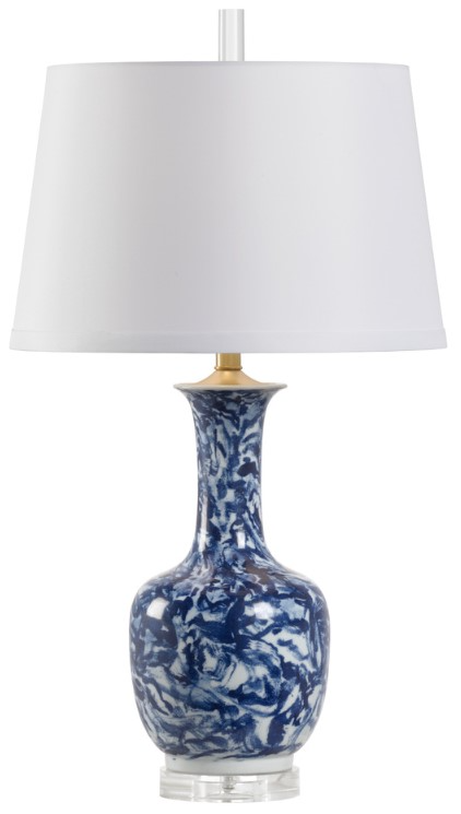 Add some sparkle to your room with this Blue Belle Lamp. This lamp features an abstract marble pattern in blue and white on ceramic with a clear crystal mounting. This stunning lamp will make your space stand out.Read More
