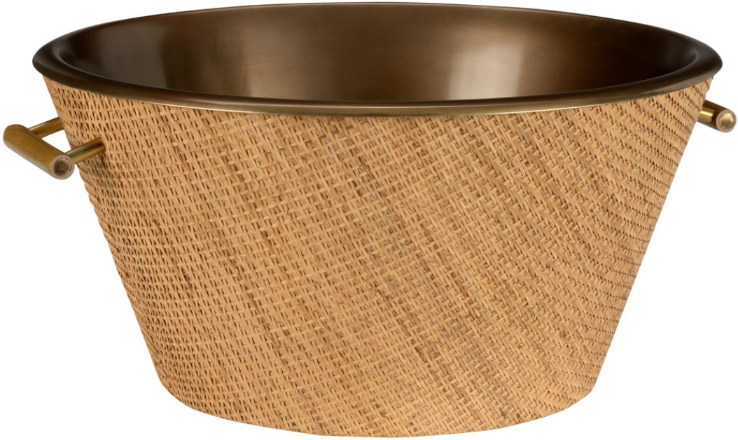 Impress guests at your next cocktail party with our Brunching Beverage Chiller. This durable design is made of steel covered in natural woven cane that provides a coastal vibe. A removable steel liner with an antique brass finish allows for easy clean up.Read More
