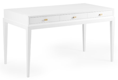 Bring a splash of color and personality to your home office by painting this beveled wood desk in your choice of any benjamin moore paint color. The three drawer design features brass knobs and is perfect for storing your office supplies. Please provide color name and number.Read More