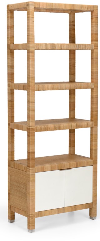 Create space while adding beauty with this wooden etagere with two door cabinet. Mimo etagere features four split rattan woven shelves for displaying your favorite books and decorative accessories. The cabinet has polished nickel handles and can be used for extra storage. This modern design will blend effortlessly in any design including coastal.Read More