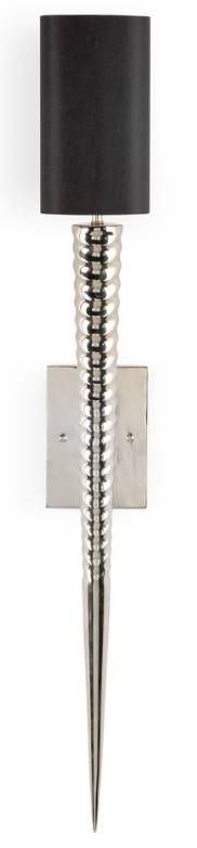 The Laguna Polished Nickel Sconce features a sleek, modern design with a lustrous nickel finish. Its clean lines and elegant curves add a touch of sophistication to any space. One light, wall mounted sconce with black silkette shade.Read More