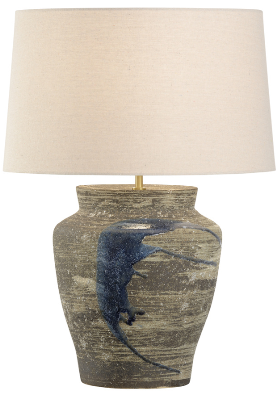 The Riku Lamp, part of the Shiga collection, offers a modern interpretation of traditional Japanese artistry, combining raw clay with a smooth drip glaze. The hand-turned ceramic body features a natural, earthy finish that highlights the organic texture of the clay unique to the Shigaraki region, while the glossy indigo glaze flows down the surface.Read More