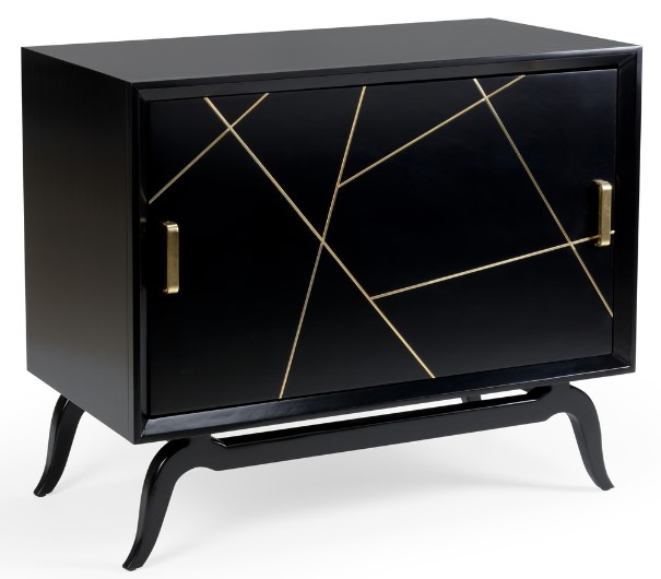 Unique revolving door drinks cabinet. black painted exterior, red interior. polished brass inlay on the door panel and hardware. available in white with blue interior. Incorporate this cabinet into your living room decor to give your home an eye-catching update.Read More