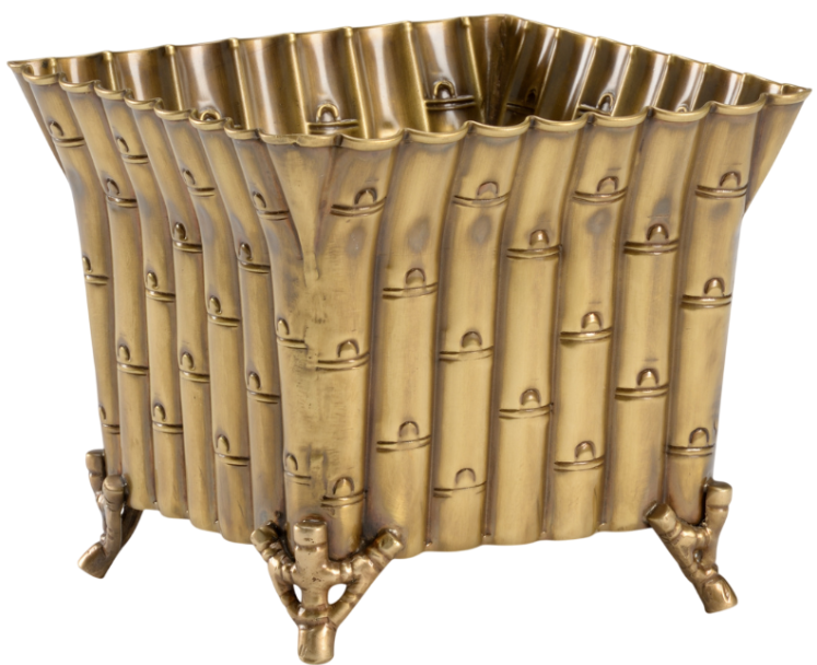 Grab the attention of your guests by adding a green plant or dried arrangement to our Square Bamboo Planter. Crafted of brass with an antique finish, this planter will enhance your traditional style. This 7" pot is ideal for adding a touch of nature by adding greenery to a console in the entryway.Read More