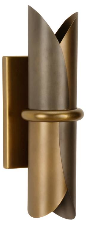 Contrasting cylindrical brass and bronze petals provide dual illumination on its mounting surface to create drama in a space. Raw yet refined, the Stockman Sconce can be installed vertically or horizontally to great effect.Read More
