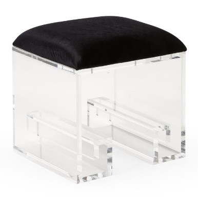 Our alluring Mykonos stool features an acrylic base with curvaceous legs created by the Greek key motif. Topped with a black velour cushion, it certainly doesn't compromise comfort. It is the perfect choice where space is limited, so get ready in style and enjoy the Mykonos stool at your vanity.Read More