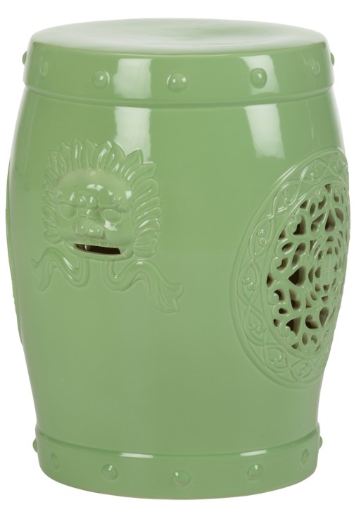 Showcase this elegant garden stool on your patio or in your garden. This beautiful scenic view of green glazed ceramic features Chinese vessel nail heads and two lions flanking an exquisite pierced medallion that is thought to bring luck into your home. It can be used as a side table, seating, or a plant stand.Read More