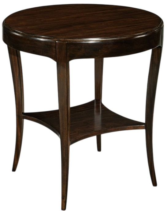 As shown, the Addison Saber Lamp Table from Woodbridge Furniture is a round mahogany veneered top with a middle shelf is elevated by elegant tapering saber legs joined by an "X" stretcher.Read More