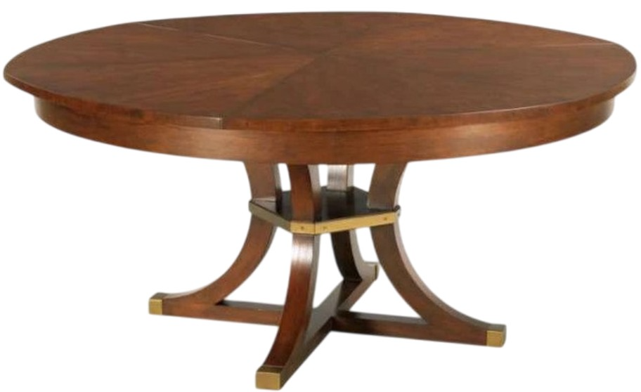 A wonderful expanding table with transitional styling. The top expands using a patented mechanism dating back to 1835 by Johnstone, Jupe & Company. The top expands from 66" to 84" Diameter and rests over four saber legs that are joined at the center with brass mounts. Make a bold statement by incorporating this stunning furniture into your home.Read More