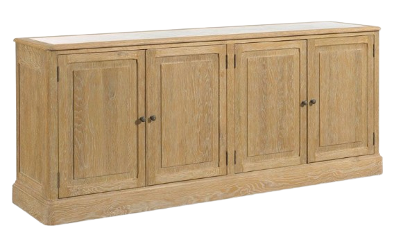 A rectangular stone top rests over four framed doors that are mounted with cast brass hardware hiding adjustable shelves. With ample storage and it effortlessly blends elegance and practicality, making it a stylish addition to any dining or living space.Read More