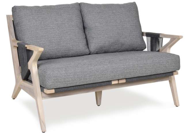 A relaxed loveseat, adapted from a Hans Wegner 1960's original, with a rope woven back supporting ample back cushions above upholstered seat cushions that is flanked by wood rope weave arms raised on tapering shaped legs.Read More