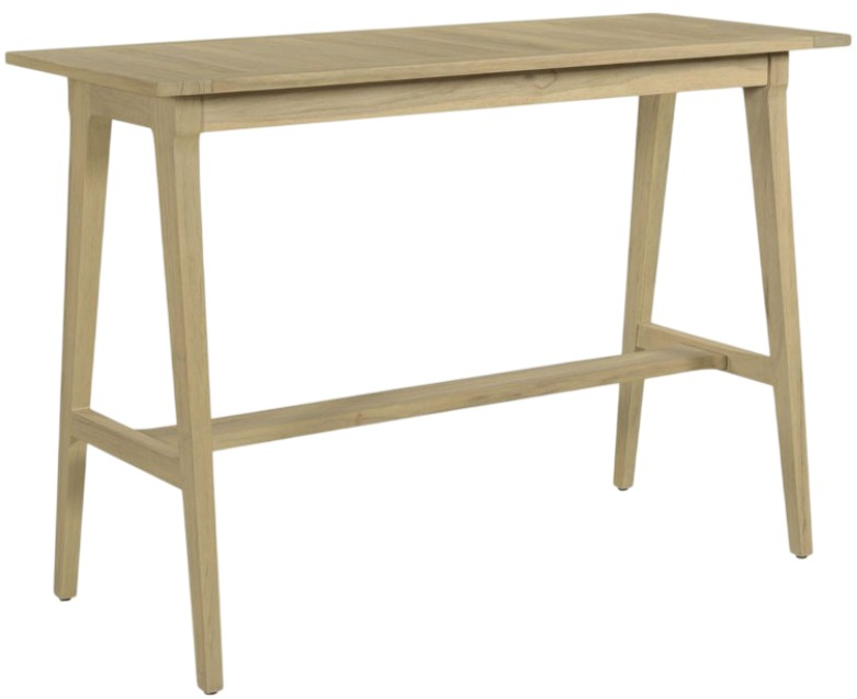 A slatted teak top is supported by a rectangular metal frame supported by squared metal legs.