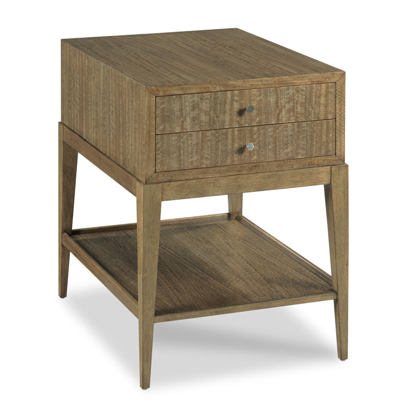This Broome Soho Side Table from Woodbridge Furniture is a versatile side table with a rectangular case featuring two drawers and four square tapered corner posts joined by a low galleried shelf.Read More
