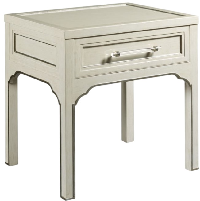 A rectangular framed top rests over four squared posts that flank a framed molded drawer accented by silver leaf stripes. Make a bold statement by incorporating this stunning furniture into your home.Read More