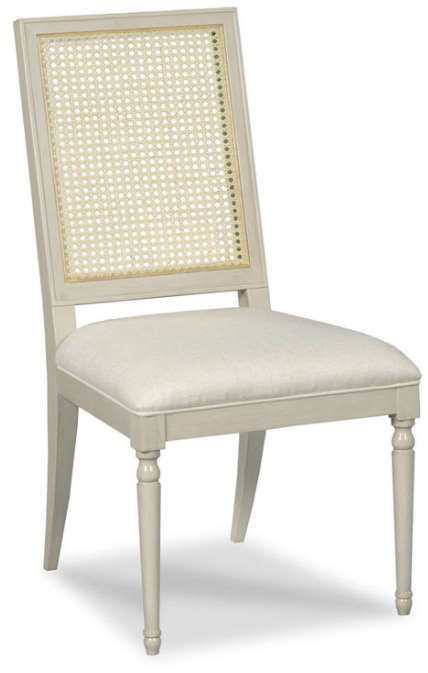 An adorable seat designed in the spirit of late 18th century French originals with turned tapering front legs that elevate an upholstered seat below a squared back that is fitted with traditional woven cane. Crafted from hardwood solids.Read More