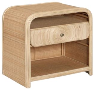 A design inspired by art deco originals from the early 20th century has a waterfall top that descends downward with overlaid split reed rattan peel. The table has a soft close drawer overlaid with delicate rounded rattan pole.Read More