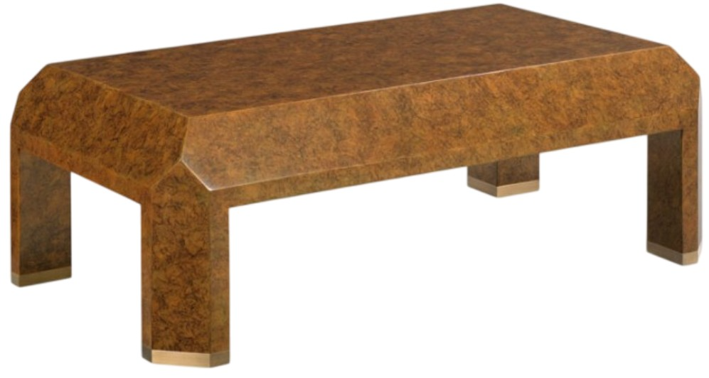 A curious design with a myriad of geometric shapes forms this terrific low table with a rectangular top that is elevated on triangular legs. Elevate your living room or dining room with the Facet Faux Tortoise Cocktail Table from Woodbridge Furniture.Read More