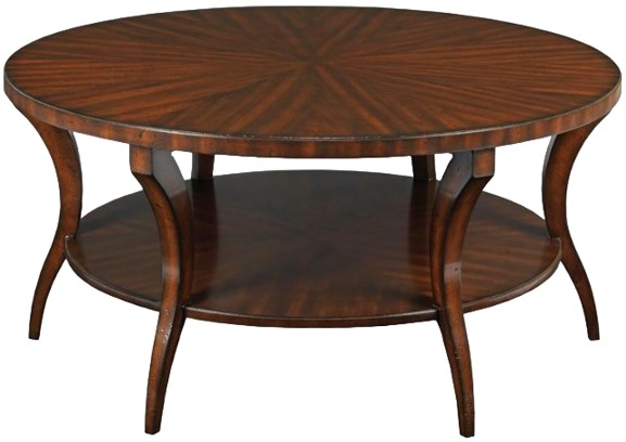 A lovely low table for drinks and books with sophisticated metropolitan styling. A round mahogany veneered top is placed over six shaped tapering legs that are joined by a low shelf.Read More