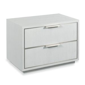 As shown, this Irvine Bedside Chest from Woodbridge Furniture is an Art Deco inspired cabinet with a rectangular top over two ample drawers fitted with soft closing slides accented with brushed nickel moldings raised on an inset plinth base.Read More