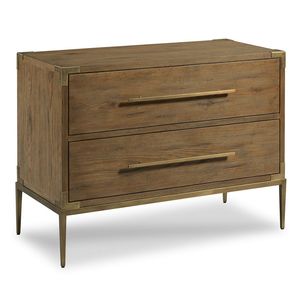 A wonderful low chest adapted from a Katana Tansu original from the late 17th century. A katana is a Japanese samurai sword and a tansu is a storage chest for the long saber styled swords. Our modernized design has authentic corner brackets called herikanagu and a rectangular oak top over two ample drawers mounted with sturdy brass bar pulls over a metal base with tapered corner posts.Read More