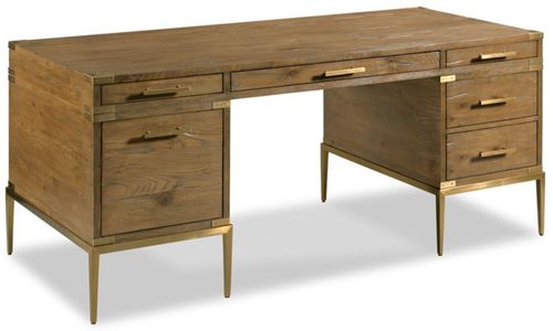 A wonderfully functional desk adapted from Japanese originals from the late 17th century. Our modernized design has authentic corner brackets called Herikanagu and a rectangular oak top over a variety of file and storage drawers mounted with brass bar pulls elevated on a metal base.Read More