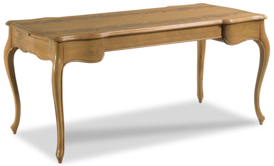 A handsome work table designed in the spirit of 18th Century French Louis XVI originals. A shaped molded rectangular top is fitted with pull-out work surfaces over a center drawer designed for keyboard use. The desk is elevated on stylized cabriole legs.Read More