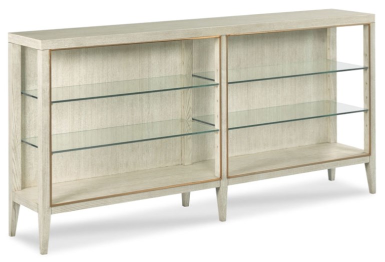 This simple bookcase is framed with a delicate brass molding and features adjustable glass shelves with a slender scale for multiple settings. Add a unique and eye-catching style to your home by incorporating this bookcase into your living space.Read More