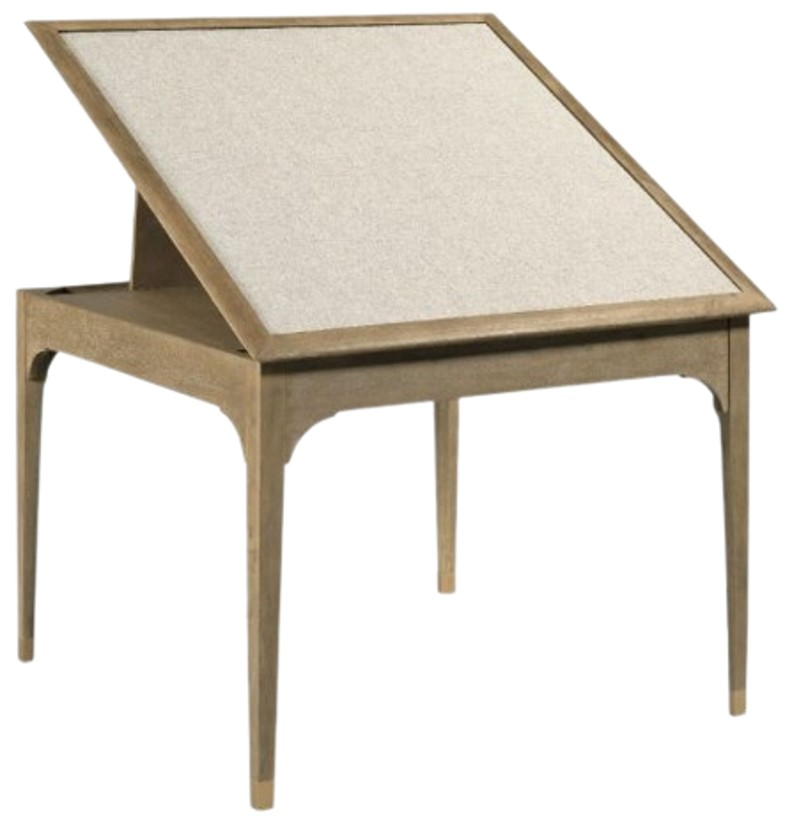 This splendid table has a molded squared top that can be tilted for gaming or puzzles and is fitted with an inset fabric field over a storage drawer that houses four two-sided panels that can be placed over fabric field for use without disturbing the below surface.Read More