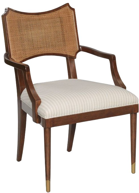 The Woodbridge Furniture Powers Cane Montserrat/Parasol Ivory Arm Chair is a sophisticated piece blending classic and contemporary design. It features an elegantly curved back with cane detailing, upholstered in luxurious ivory fabric. The wooden frame has a refined finish, making it an ideal choice for stylish living spaces.Read More