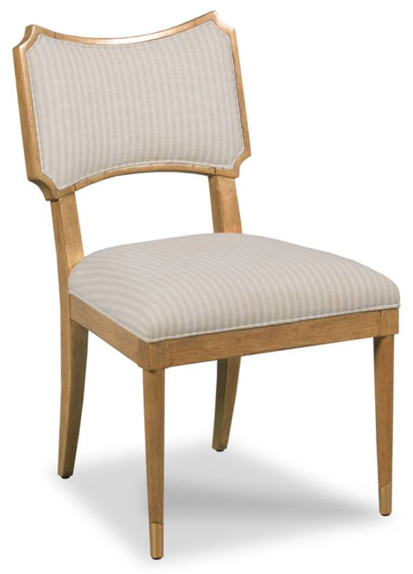 A handsome chair adapted from French Empire styles from the 19th Century. A shaped back is upholstered between curved arms above an upholstered seat elevated on tapering legs. Elevate your living or dining room with this Powers Auden/Parasol Ivory Side Chair by Woodbridge Furniture.Read More