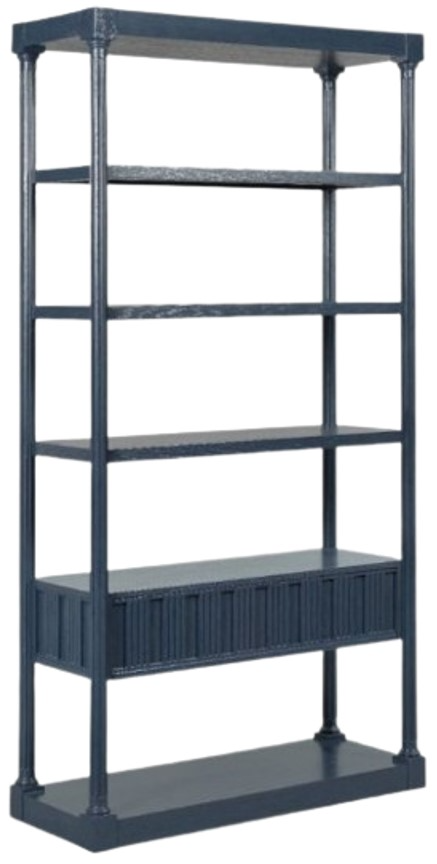 Crafted with meticulous attention to detail, this etagere/bookcase stands out with its timeless dental molding, adding a touch of classic architectural elegance. Its sturdy construction ensures durability, while the spacious design provides ample room for organizing items. The rich navy finish adds a refined touch to any living or office space.Read More