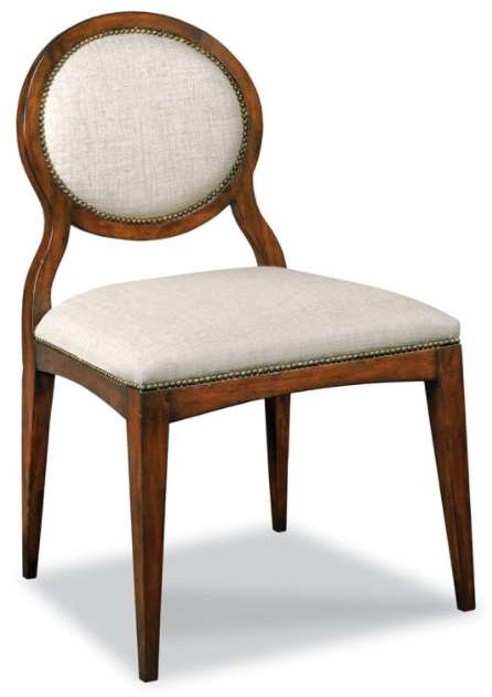 Shown in Repel Stainguard Linen finish. A classic design with graceful tapered legs that are joined by rails that hold an upholstered seat and oval back. Make a bold statement by incorporating this stunning furniture into your home.Read More