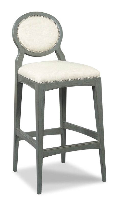 A sleek design with gracefully tapered legs that are joined by low stretchers and curved apron rails. The stool features an upholstered seat and back and is finished with a nailhead trim. Include this upholstered counter stool in your home to bring out the beauty and style of your dining room.Read More