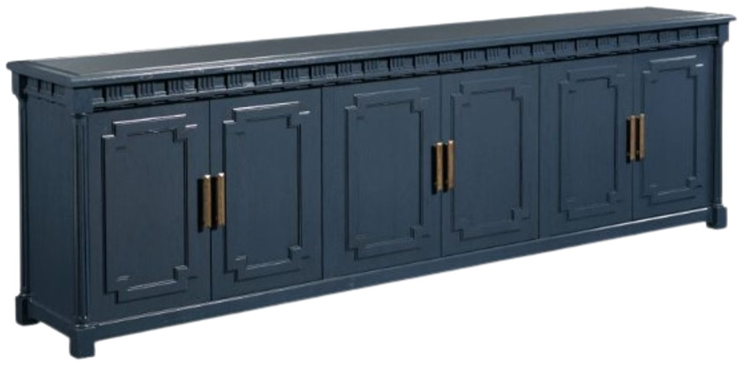 The Woodbridge Furniture Wilshire Navy Cabinet features ample storage space with its well-designed interior, perfect for organizing items. Crafted with meticulous attention to detail, this media cabinet stands out with its timeless dental molding. This cabinet has generous dimensions and ample storage.Read More