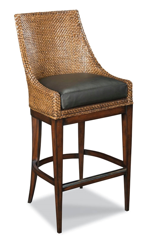 A pleasing, transitionally designed counter stool features a curved back woven with fine leather. A leather-upholstered seat rests above gently tapering posts that are joined by low heel rests. Include this upholstered counter stool in your home to bring out the beauty and style of your dining room.Read More